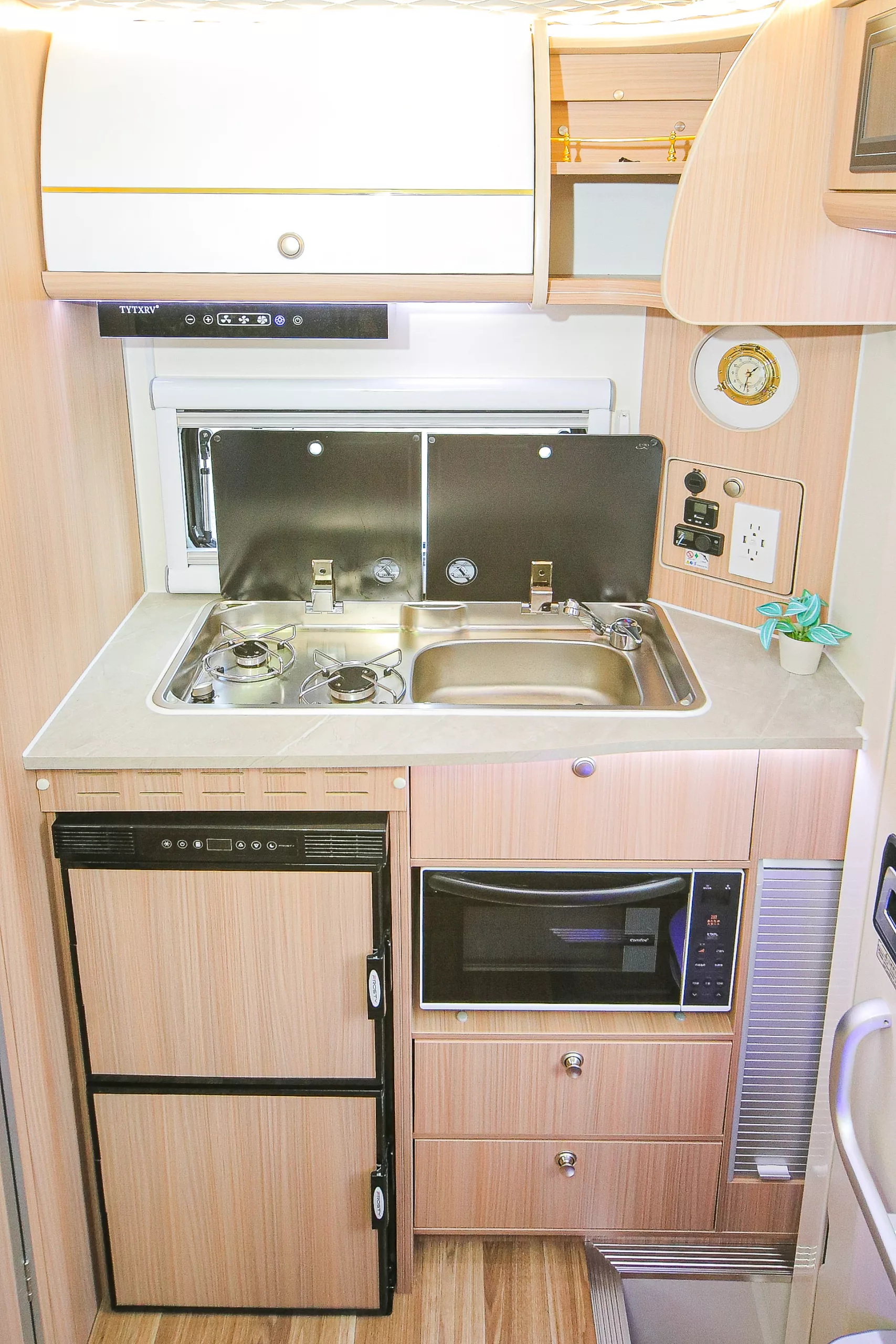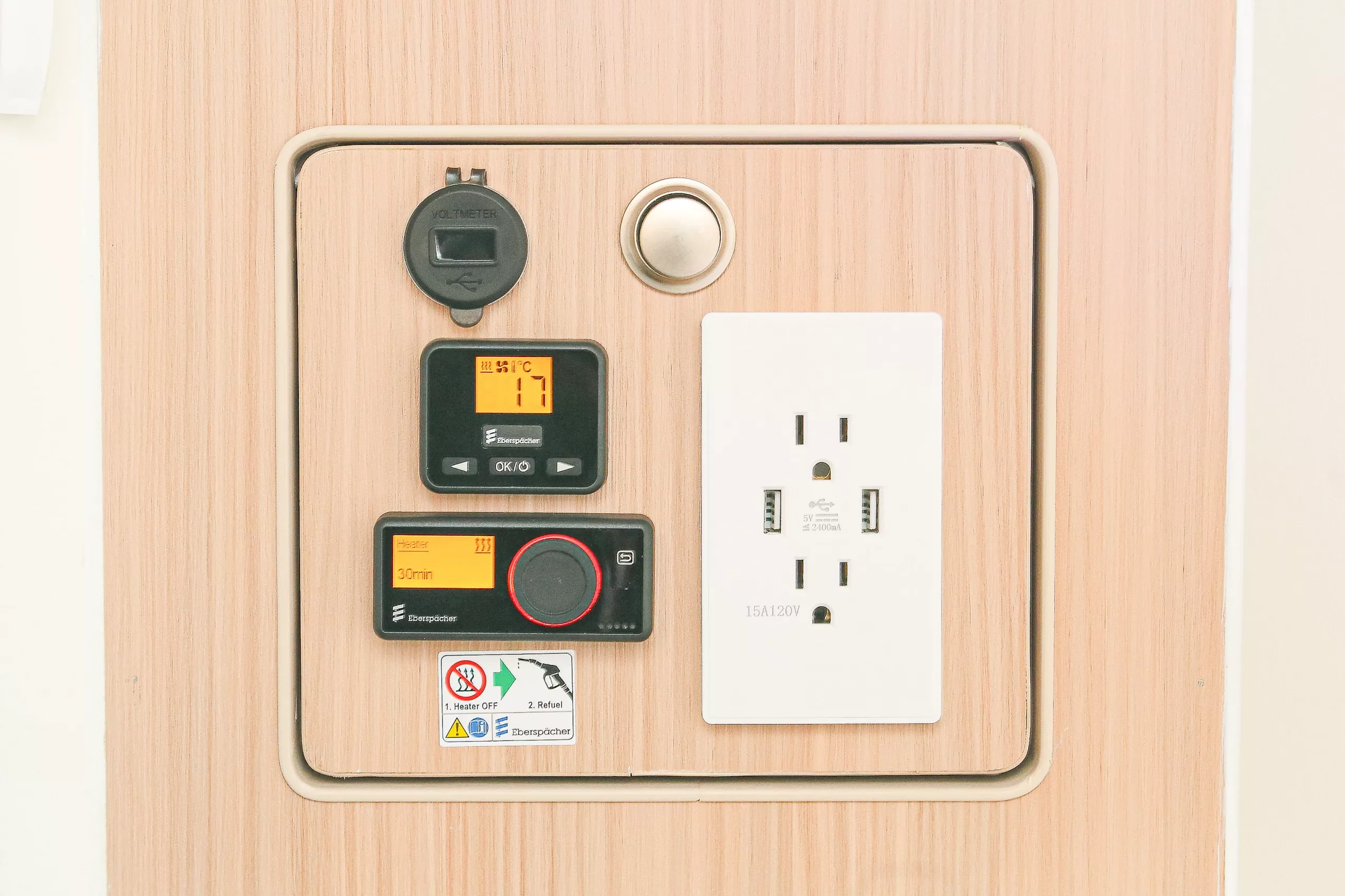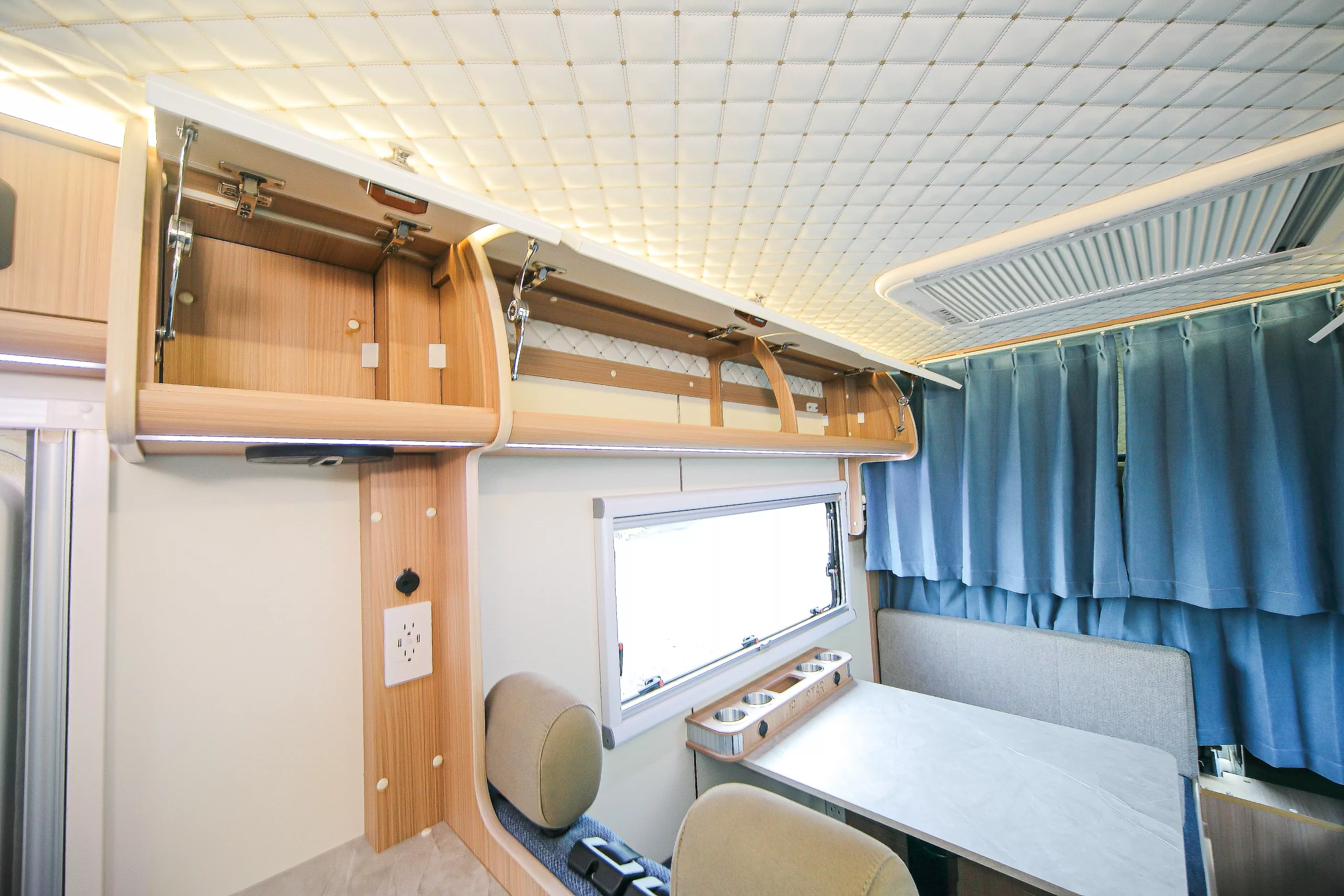 エアコン、FFヒーター、冷蔵庫、電子レンジ、シャワールームなど、生活に必要な設備がそろっており、まるで動くマイルーム。長旅も快適です。