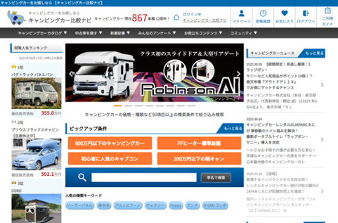 「大きくて豪華な家」から「機動力のある秘密基地」へ。 キャンピングカー比較ナビが2025年11月の閲覧数ランキング(MVC)を発表