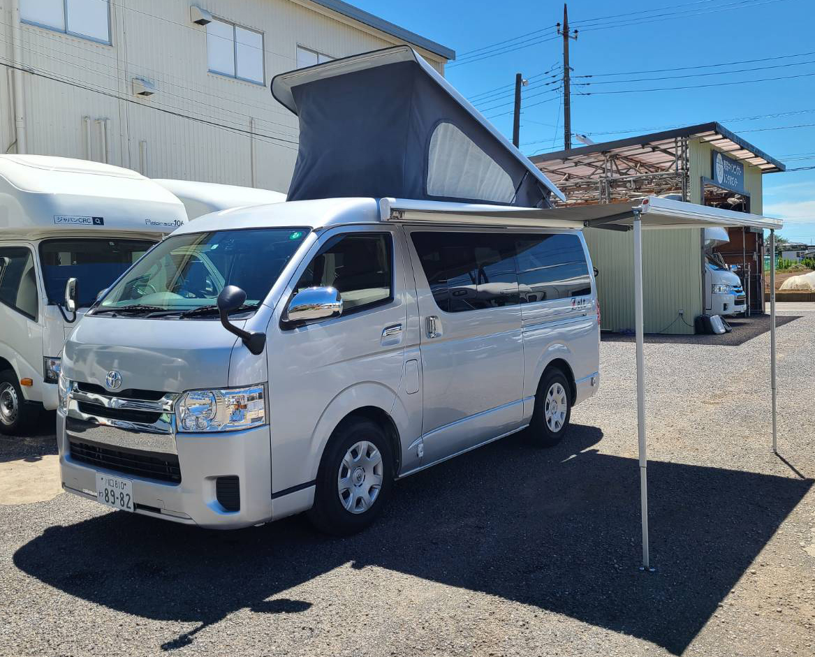 ベット展開不要の2段ベッド仕様の大人気キャンピングカー!ファミリーでゆったり寛げる居住空間を演出。2WD ガソリン ETC ナビ バックモニター バンクベッド 常設2段ベッド FFヒーター 常設コンロ 冷蔵庫 300Wポータブルインバーター ソーラーパネル ダブルサブバッテリー 走行充電 外部充電 MAXファン 走行用リアクーラー リアラダー